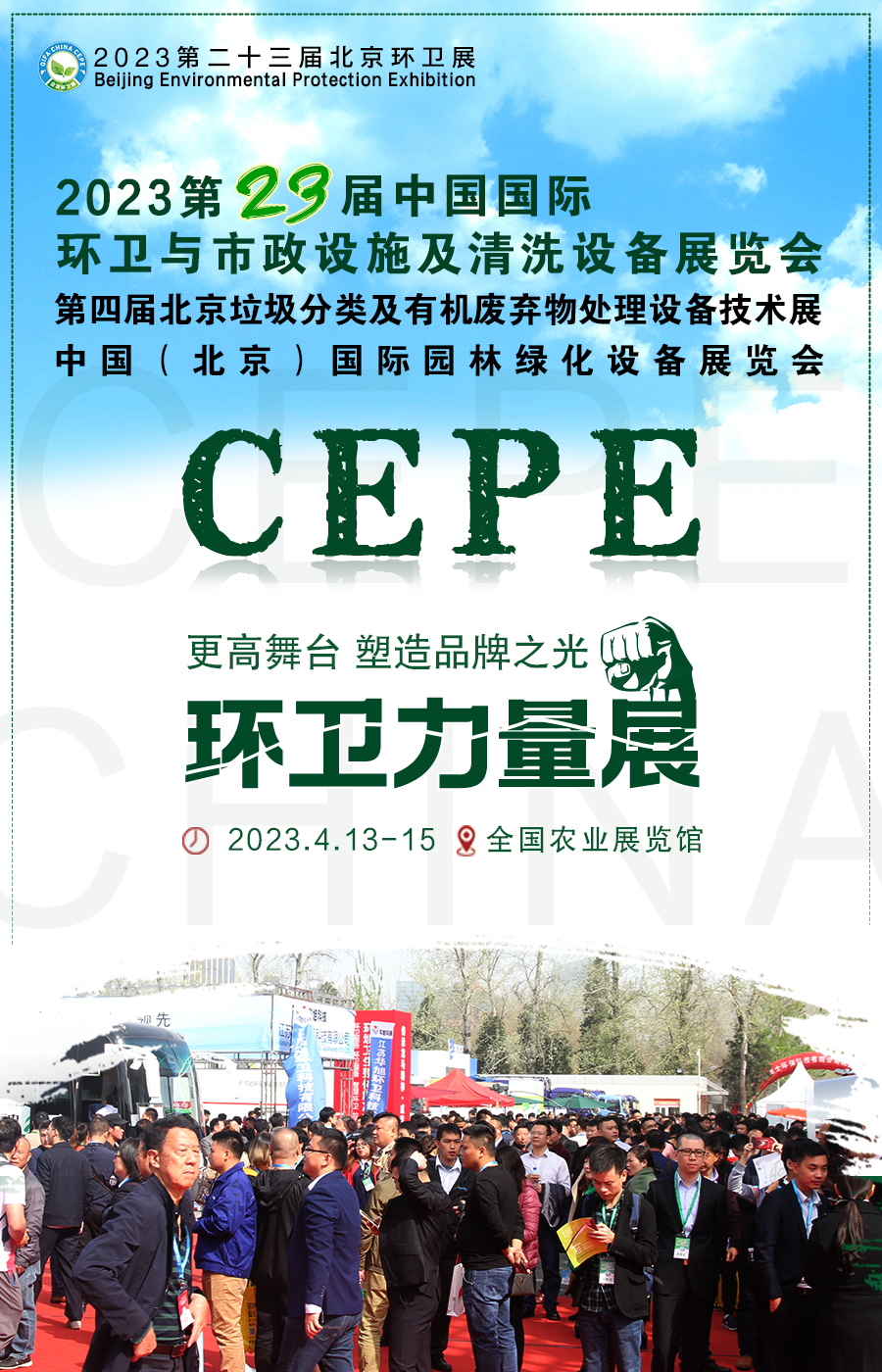 行業(yè)內(nèi)極具影響力的企發(fā)環(huán)衛(wèi)展CEPE China 在北京已成功舉辦了22屆,被譽(yù)為亞洲環(huán)衛(wèi)行業(yè)旗艦展,展會(huì)多年來(lái)得到住建部、生態(tài)環(huán)境部、城管局、園林局、多個(gè)省市環(huán)協(xié)以及北京市多個(gè)局委與市政府的大力支持。展會(huì)力爭(zhēng)發(fā)揮津京冀協(xié)同發(fā)展區(qū)域優(yōu)勢(shì)、輻射全國(guó)環(huán)衛(wèi)行業(yè)市場(chǎng),旨在通過(guò)環(huán)衛(wèi)設(shè)備展示和信息發(fā)布等多種形式,加強(qiáng)本行業(yè)的交流與合作,為了更好地服務(wù)參展商,主辦單位加大宣傳力度,著重邀請(qǐng)全國(guó)環(huán)衛(wèi)局、園林局、環(huán)衛(wèi)中心、環(huán)衛(wèi)服務(wù)公司、清洗保潔公司、物業(yè)公司、環(huán)境工程公司、旅游景區(qū)、高校等環(huán)衛(wèi)設(shè)備相關(guān)用戶(hù)到會(huì)參觀、采購(gòu),預(yù)計(jì)展會(huì)面積50000多平方米,參展商500多家,專(zhuān)業(yè)觀眾將達(dá)到30000多人次,CEPE是引導(dǎo)環(huán)衛(wèi)行業(yè)前進(jìn)和發(fā)展方向的高質(zhì)量展覽會(huì)。是全國(guó)乃至全球年度極具規(guī)模的環(huán)衛(wèi)行業(yè)旗艦展。本屆環(huán)衛(wèi)展聚焦“垃圾分類(lèi)新技術(shù),展示中國(guó)環(huán)衛(wèi)新裝備”的展會(huì)定位,以“環(huán)衛(wèi)力量展”為主題,以“創(chuàng)新應(yīng)萬(wàn)變,以實(shí)干謀發(fā)展”為指導(dǎo),總體呈現(xiàn)“三高”的特點(diǎn):