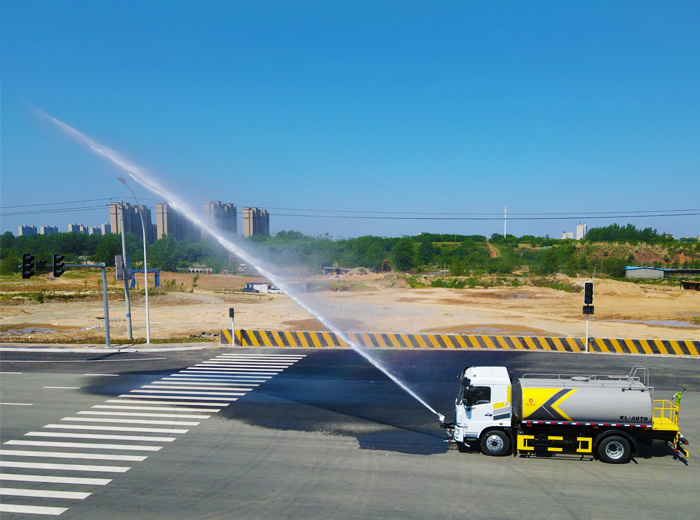 產(chǎn)品配置、功能:產(chǎn)品標(biāo)配前沖、后灑、側(cè)噴、后置式工作平臺(tái)、平臺(tái)上有高壓水炮(可360°旋轉(zhuǎn),水霧形狀可調(diào)成直沖狀、 大雨、 中雨、 小雨、毛毛雨;調(diào)成直沖狀最大射程≧ 35 米,也可調(diào)成霧狀最大射程≧15米)、配備優(yōu)質(zhì)大功率專用灑水泵,品牌取力器、雜物過(guò)濾網(wǎng)、國(guó)標(biāo)通用 65 型消防接口(可通過(guò)消防栓加水)、1 套自流球閥系統(tǒng)(可自吸自排,最大吸程 7 米)、2 根引水鋼絲膠管。適用于各種路面清洗;樹(shù)木、綠化帶、草坪綠化;道路、廠礦企業(yè)施工建設(shè)、高空建筑沖洗。具有灑水、壓塵、高(低)位噴灑、農(nóng)藥噴灑、護(hù)欄沖洗、應(yīng)急消防等多種功能。